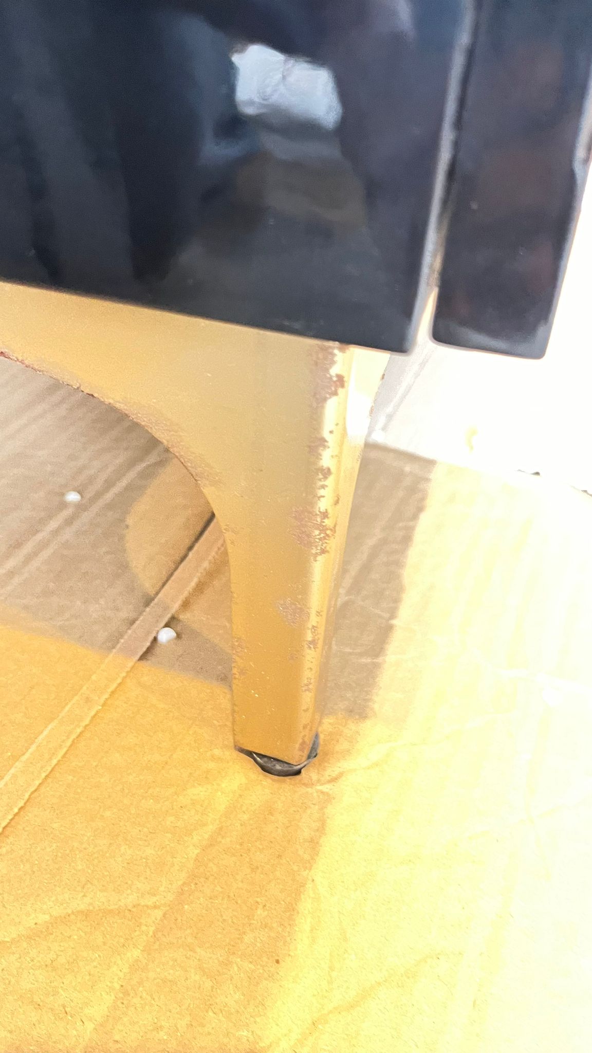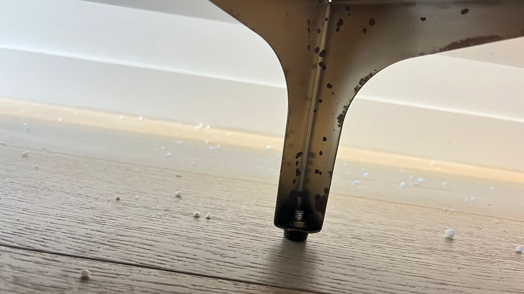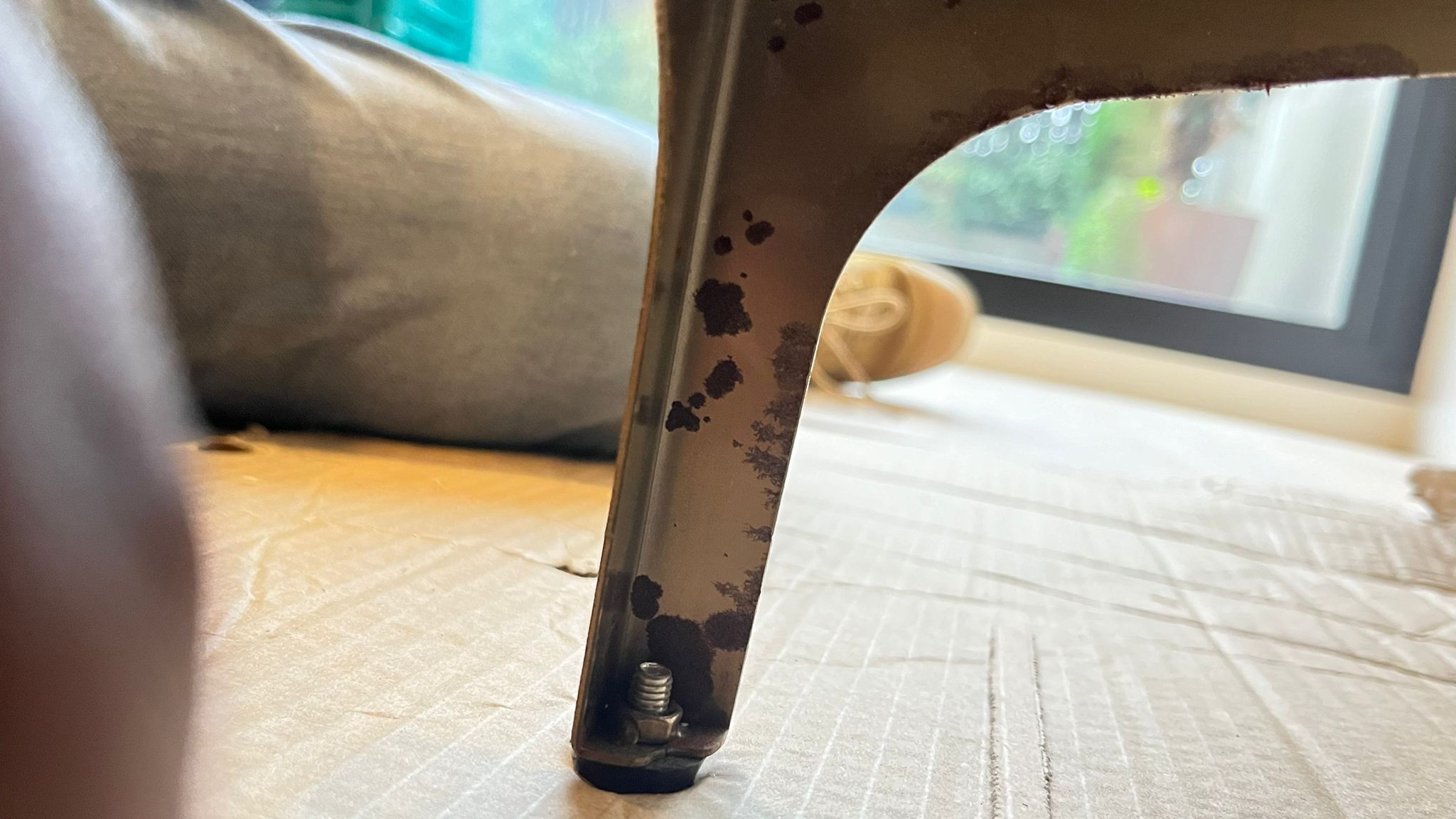 The tv unit got rusted legs.