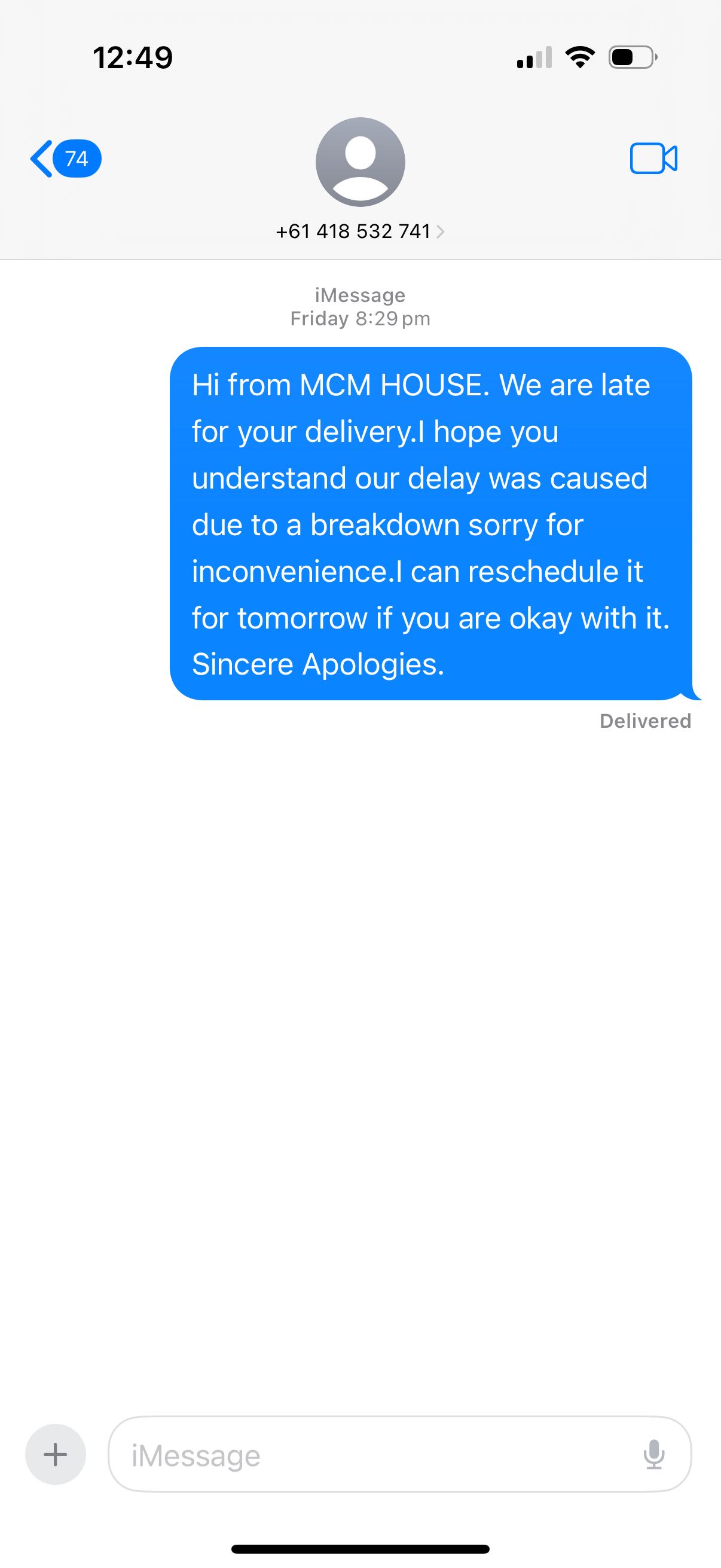 Customer didn’t answer call on delivery day.No response for late delivery text as well