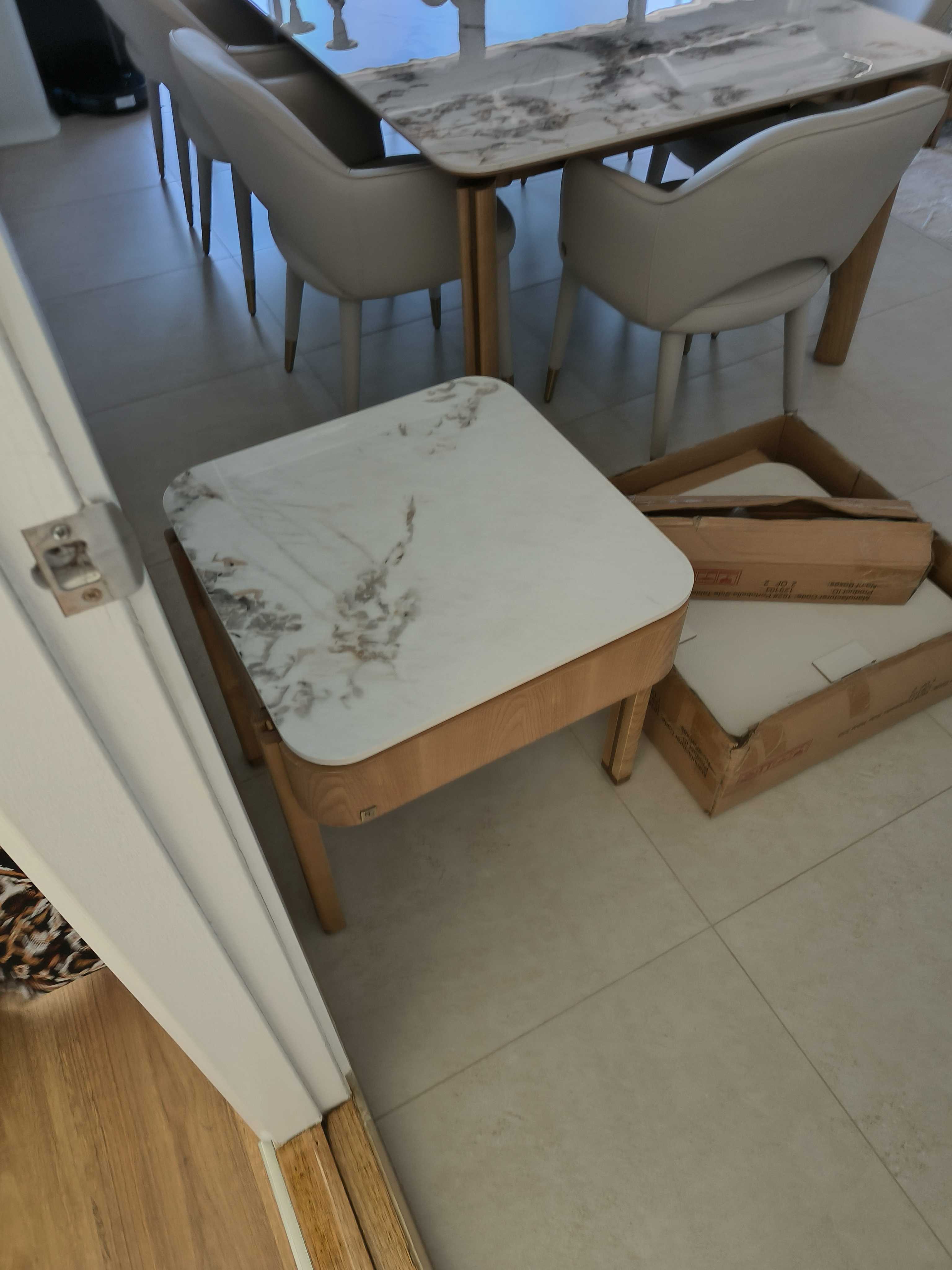 Coustomer was not happy with chairs as she said it has marks same as one she got and one for side table was faulty we could not get screws in